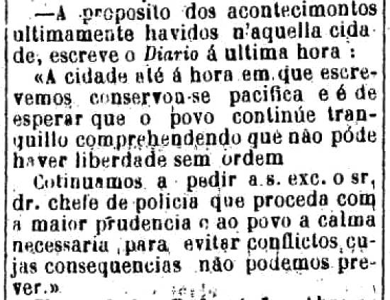 motivo, em Santos, voltaria amanhã, sem acompanhar-se de força, porque a ninguém de bom senso é lícito acreditar que se revoltem duas mil pessoas