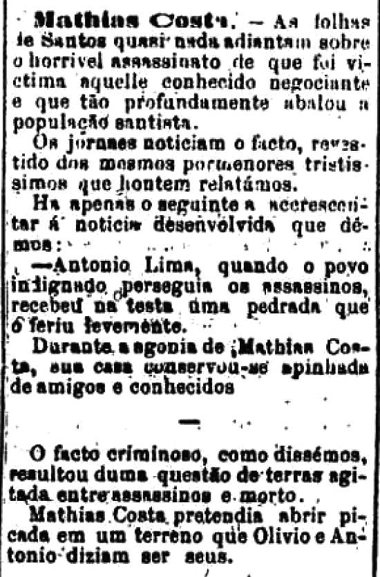 Matias Costa veio a falecer duas horas depois. Houve reboliço pela cidadezinha de
