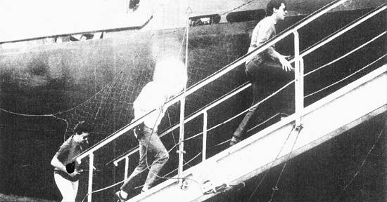 braço direito. A seu lado, um menor. Ambos aproximavam-se do navio Morillo, quando o barqueiro percebeu a presença de policiais e repórteres.