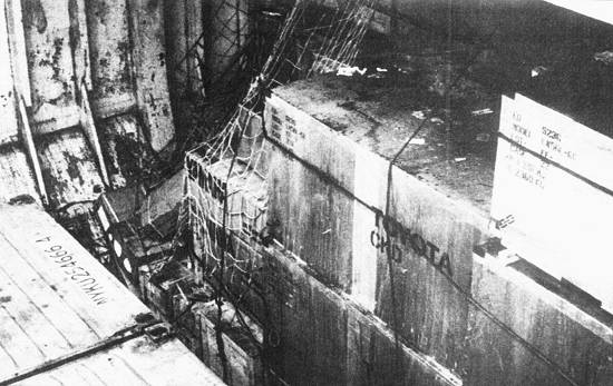 não foi possível apurar a causa desta ausência. No navio Mikonos, armazém 33, apesar de contar com uma carga valiosíssima e muito procurada