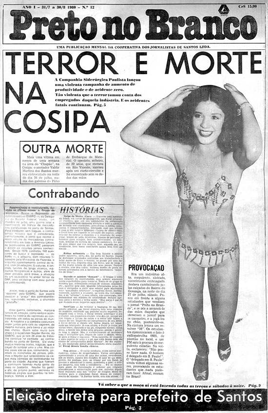 Um dos jornais citados como proibidos era o Preto no Branco, publicado mensalmente pela Cooperativa dos Jornalistas de Santos (Jornacoop), que na edição colocada nas bancas em 31/7/1980 já registrava na capa as ameaças veladas que vinha sofrendo: Expediente do jornal 'Preto no Branco'