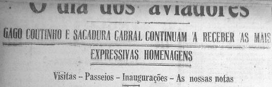 - Veio ontem à nossa redação o oficial da armada portuguesa, sr. Horácio de Faria Pereira, ajudante de ordens do contra-almirante Gago Coutinho, o