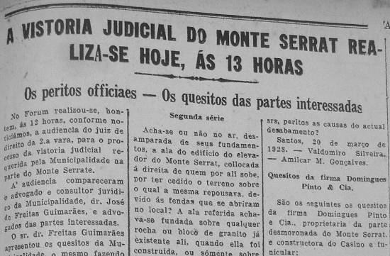 noticiamos, a audiência do juiz de direito da 2ª vara, para o processo da vistoria judicial requerida pela Municipalidade na parte do Monte Serrate.