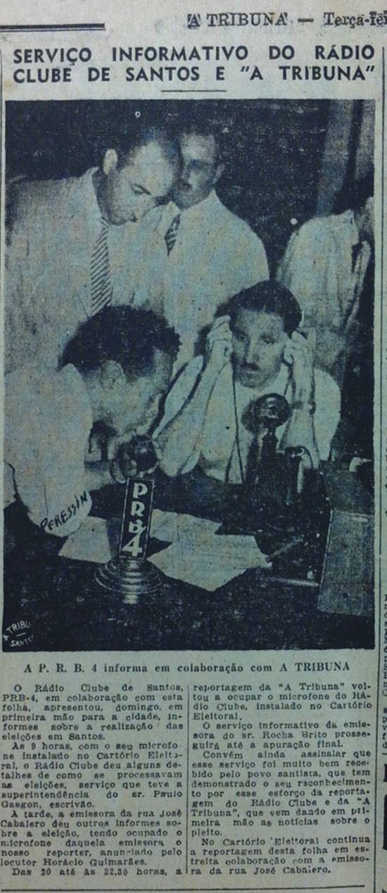 Em 21 de janeiro de 1947, uma terça-feira, o jornal santista A Tribuna assim noticiava na página 4 a participação da emissora na cobertura jornalística das