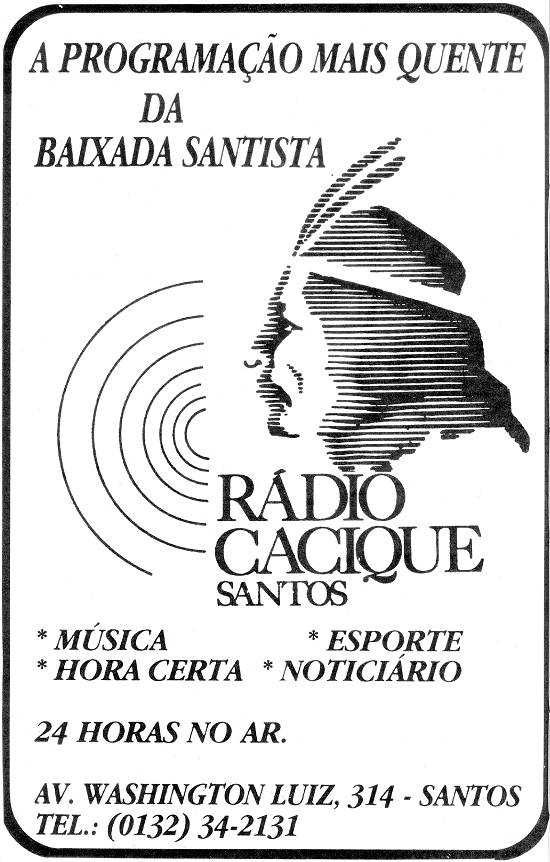 Esse grupo transferiu a propriedade da Rádio Cacique de Santos, que transmite na faixa AM de 1.510 kHz, para o sr. Armênio Mendes, titular do extraordinário conjunto de hotéis e