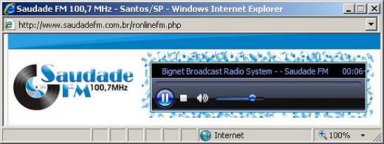 Imagem: captura de tela secundária da rádio na Internet: note-se ligação com o provedor Bignet