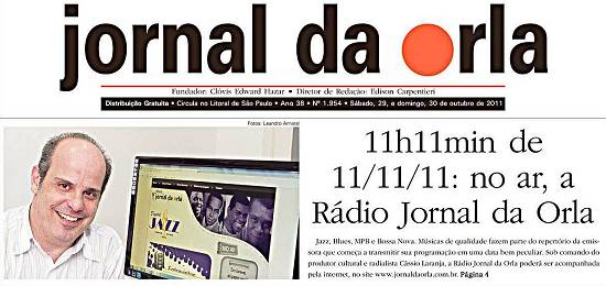 O momento do início das transmissões é bem especial: 11 horas e 11 minutos do dia 11 do mês 11 do ano de 2011. É a Rádio Jornal da Orla Digital Jazz, parceria entre o semanário gratuito santista e o site Digital Jazz, criado em 9 de fevereiro de 2009 pelo produtor musical e cultural Cassio Machado de Campos Laranja para a divulgação de títulos raros de jazz, bossa nova, música popular brasileira e blues. Na verdade, uma ampliação de programa por ele apresentado na rádio Litoral FM, como conta em seu site: