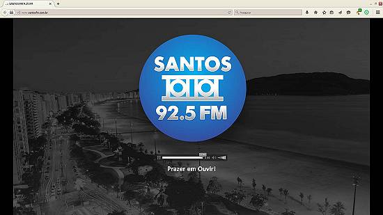 Página única do site da Rádio Santos FM quando de sua inauguração