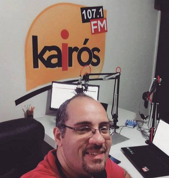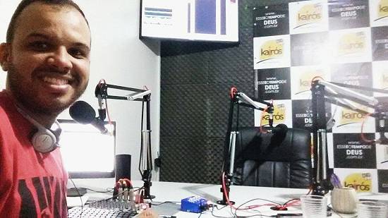 Locutor Thiago Ferraz no horário vespertino da emissora