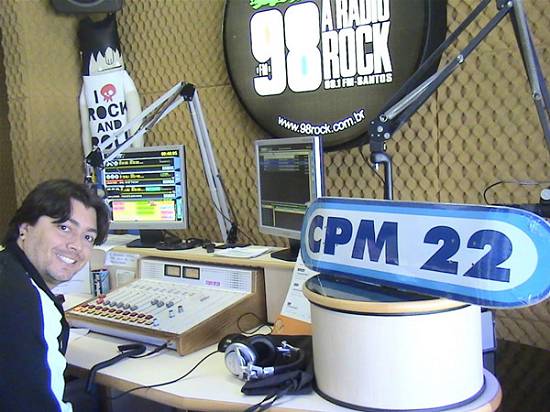 Imagem: captura de tela do vídeo Bastidores da 98 FM a Rádio Rock, postado no YouTube por flaviosantana em 28/5/2009. Clique >>aqui<< para obter o vídeo em formato MP4 (4'45", 21,3 MB)