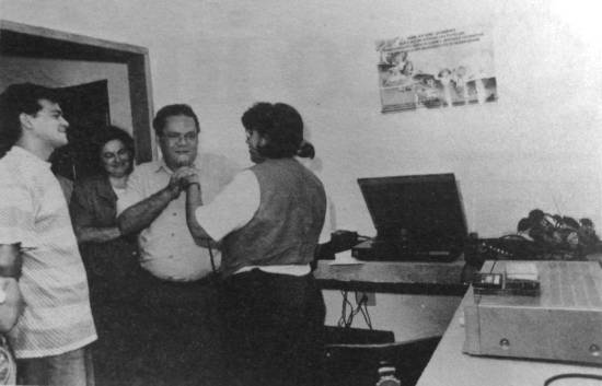 Na Zona Noroeste de Santos, usando sistema de alto-falantes, em 1993