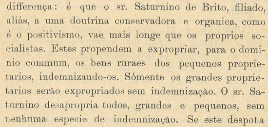 Já o mesmo não é possível dizer das intenções anarquistas do sr. Saturnino de Brito, cuja opinião,
