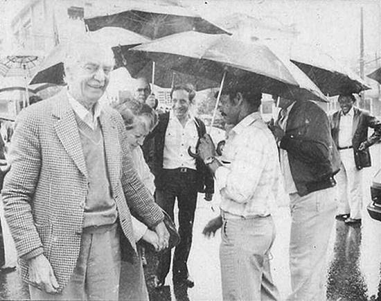 No chuvoso dia 6 de setembro de 1982, durante sua campanha eleitoral para governador de São Paulo, Jânio fez mais uma caminhada em apoio aos candidatos do seu partido político, o PTB, começando na Av. Rodrigues Alves, junto ao edifício-sede da Companhia Docas do Estado de São Paulo (Codesp), passando pelo comitê do partido e terminando no Restaurante Portuário. Ela foi registrada pelos fotógrafos do extinto jornal Cidade de Santos: