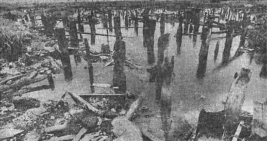 (Nas imediações do gasômetro tudo virou ruínas. Estragos de grande monta foram
