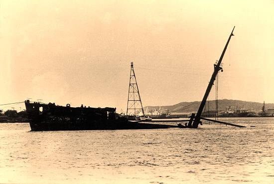 Os destroços do navio, em foto do final da década de 1980/90