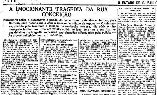 pelo acontecimento, seguindo, com avidez, a marcha dos trabalhos da polícia paulista. Esta é geralmente elogiada pela rapidez com que agiu no caso,