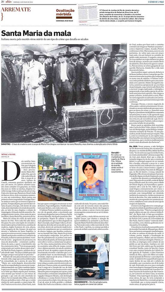 ela está enterrada no Saboó. Por ter matado mãe e filha, o crime de Pistone perturbou mais o País que a versão similar de 1908, quando o comerciante