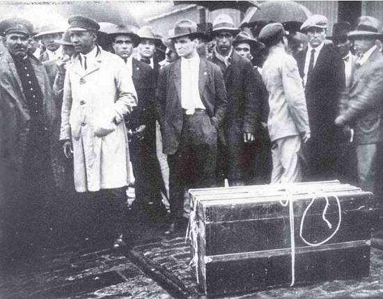 Chamou então um caminhão para levar a carga até a Estação da Luz, de onde partiu para Santos. Lá contratou outro caminhoneiro para o transporte até