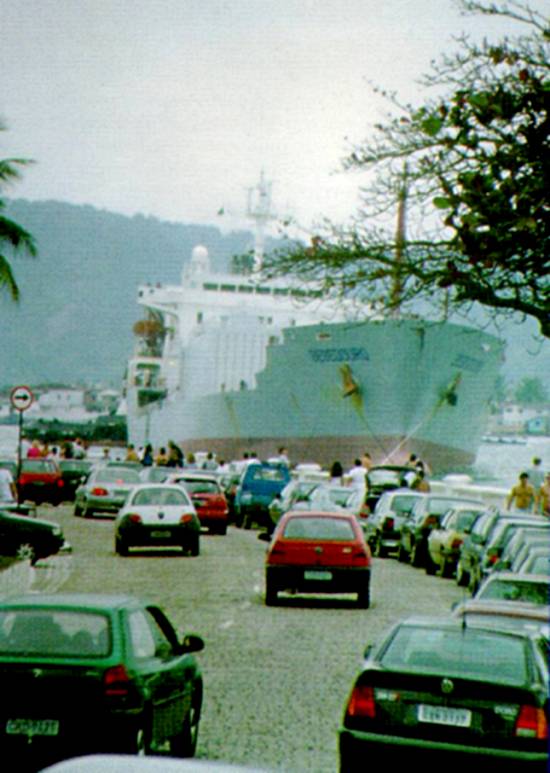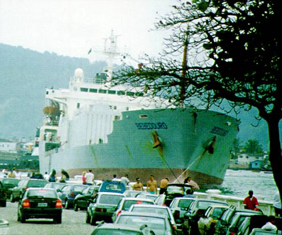 atraiu centenas de moradores e de turistas, pelo inusitado do fato. Nesse dia, durante quase 12 horas, o navio Bebedouro, de bandeira