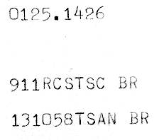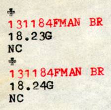 Hora GMT no telex, do Observatório do Valongo/RJ, após discar [0000]. Em vermelho, o prefixo do jornal Folha da Manhã, origem da chamada. NC = Não Conecta, pois não se pediu conexão com outro telex