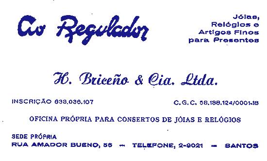 Relojoaria - O telefone 2.9021 é muito conhecido por grande número de empresas santistas. Pertence à relojoaria Ao Regulador, que está instalada há 44 anos na Rua Amador Bueno, atualmente no número 56. Por esse telefone são recebidos diariamente, no horário comercial, mais de 30 pedidos de hora certa, provenientes principalmente da Refinaria Presidente Bernardes, Union Carbide, Caixa Econômica do Estado, Companhia Docas de Santos, repartições oficiais e bancos. A Estação Rodoviária era um dos solicitantes de hora certa, até ser instalado o relógio de quartzo.
