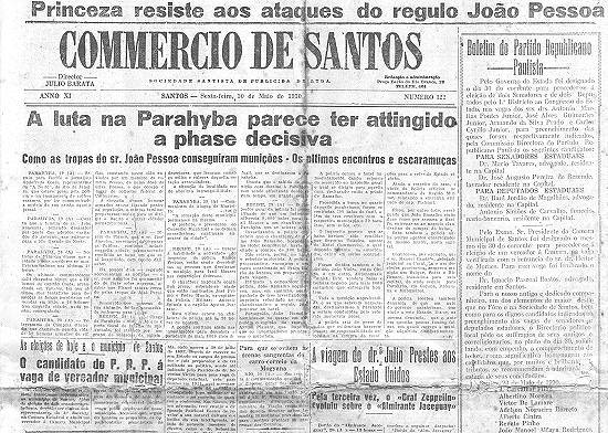 A situação política na Paraíba de 1930 está por diversas formas ligada com a história santista. Primeiro, porque o principal personagem, João Pessoa, além de dar seu nome à capital daquele estado nordestino, também foi usado para rebatizar a Rua do Rosário, em Santos, em função de um movimento popular que assim o exigiu. Está igualmente ligada à história do governador paulista e presidente não empossado da República Júlio Prestes de Albuquerque. Por fim, os dias conflituosos de 1930 naquele estado foram amplamente acompanhados pela imprensa santista, que assim registrou (ortografia atualizada nesta transcrição):