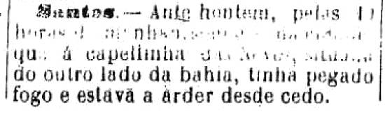 vivência em Santos -, o incêndio ter-se-ia verificado durante a madrugada, destruindo por inteiro o templo. A imagem de Nossa Senhora das Neves, que