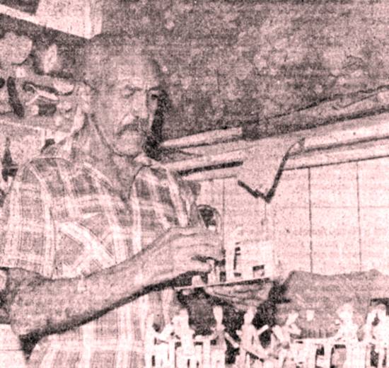 aos poucos Manoel Josete Molina dá vida aos bonecos. Dezenas de bonecos de madeira que movimenta por meio de um manejo feito com arruelas, arame e