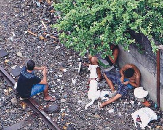 flagrou pelo menos 15 pessoas usando drogas na linha férrea.
