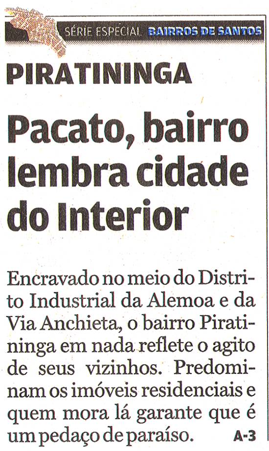 Publicado em 15/3/2010 no jornal A Tribuna de Santos, página A-3