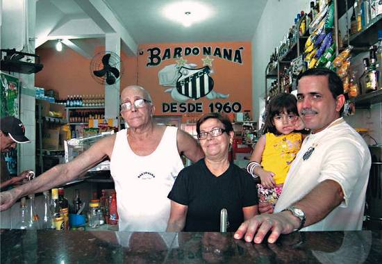 No balcão do bar da família, Naná conta com a ajuda da mulher Floripes e do filho Rogério, pai da pequena Mariana, de 3 anos