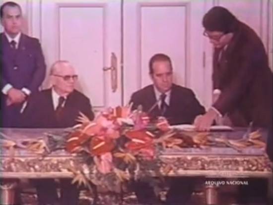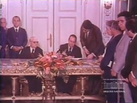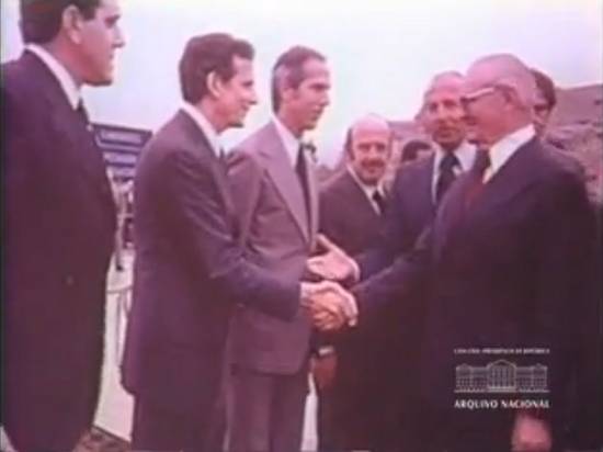 [PRESIDENTE ERNESTO GEISEL em Santos, SP; assina convênios na prefeitura e inaugura a Rodovia dos Imigrantes; presente o governador Paulo Egídio]