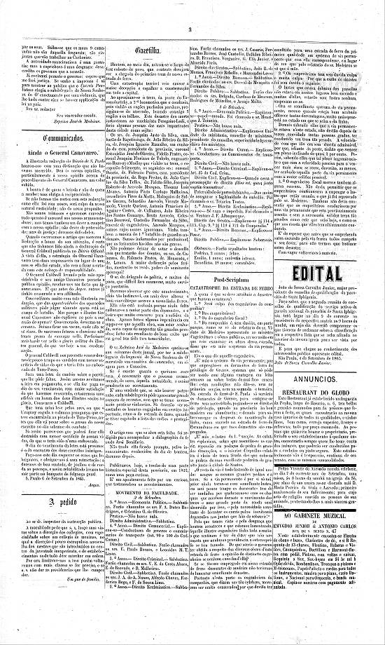 Imagem: reprodução da página 3 do Diário de São Paulo de 7/9/1865