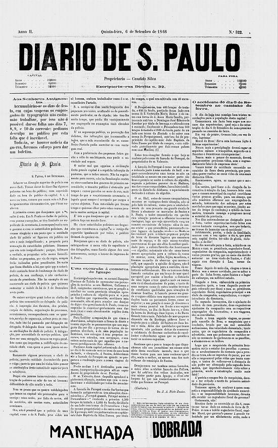 Imagem: reprodução da página 1 do Diário de São Paulo de 6/9/1866