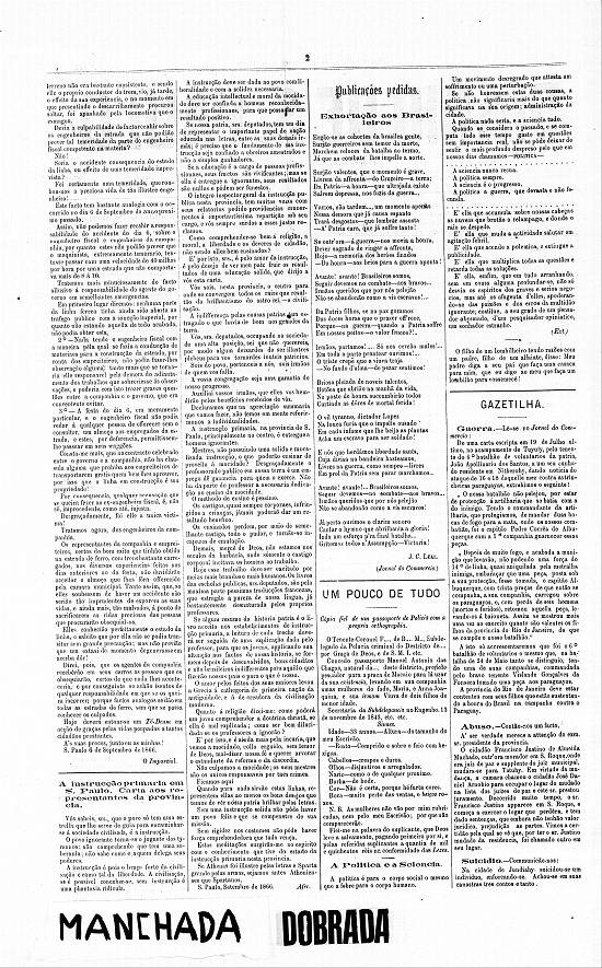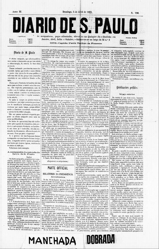Na sua edição de 5 de abril de 1868 (ano III/nº 790), o jornal paulistano