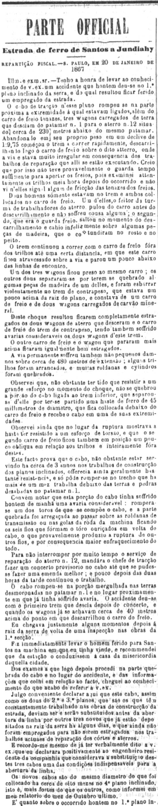 É quanto sobre o ocorrido ontem no 1º plano inclinado da serra cabe-me levar ao conhecimento de v. excia.