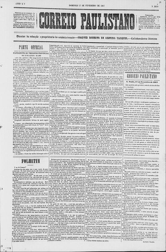 Página 1 da edição de 17/2/1867 do jornal Correio Paulistano