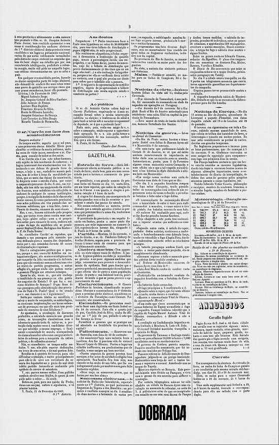 Página 3 da edição de 17/2/1867 do jornal Diário de S. Paulo
