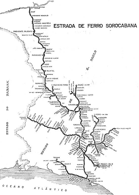 linhas da Estrada de Ferro Sorocabana, no Estado de São Paulo, desde o litoral Sul, Santos, São Paulo, até Presidente Epitácio. Foi publicado