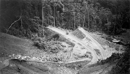 As obras da ferrovia, na Serra do Mar: