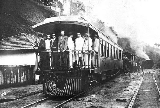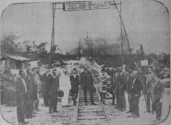 Em 5/12/1934, faltando pouco para a inauguração, um automóvel percorre o traçado da ferrovia, onde seriam