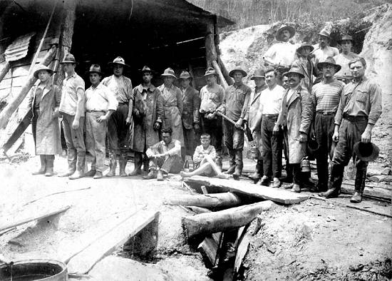 brasileiras, no século XIX e início do século XX. A foto abaixo mostra um grupo de trabalhadores imigrantes construindo um túnel na ligação