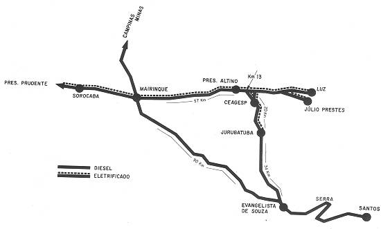 monopólio da E.F. Santos a Jundiaí. Ao contrário da antiga Inglesa - que usava um sistema especial de cabos desde sua construção até 1974,