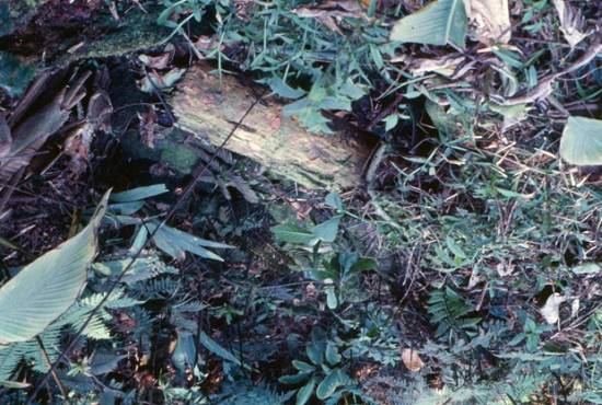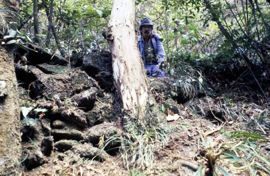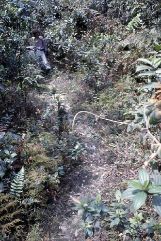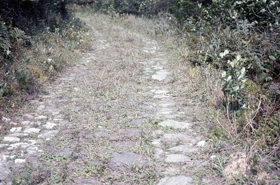 certo trabalho é identificável, porque são visíveis os cortes, sob a vegetação, no morro. Também o próprio leito do caminho é identificável, mesmo tomado já por árvores de razoável porte. Depois de cruzar vários riachos, surge à frente o rio que