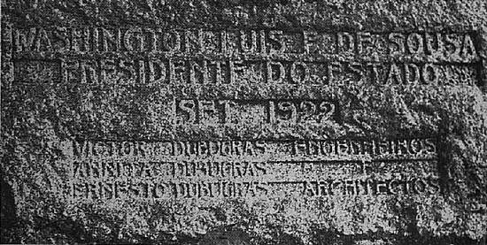 [1] Placa de granito existente no Pouso de Paranapiacaba com a inscrição