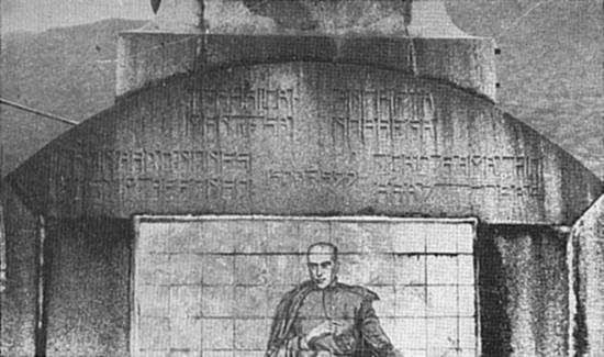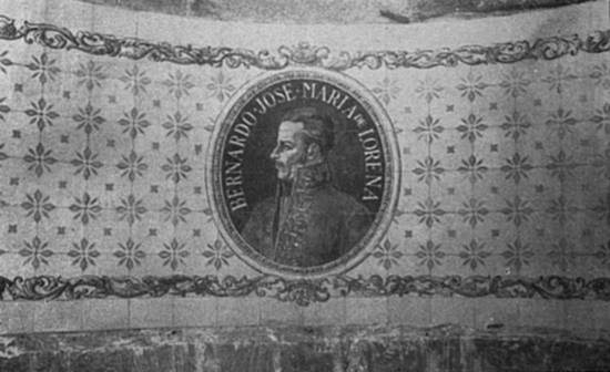 das placas que pertenceu ao monumento erigido por B. J. M. de Lorena. No intradorso do arco central vê-se medalhão com retrato de Lorena