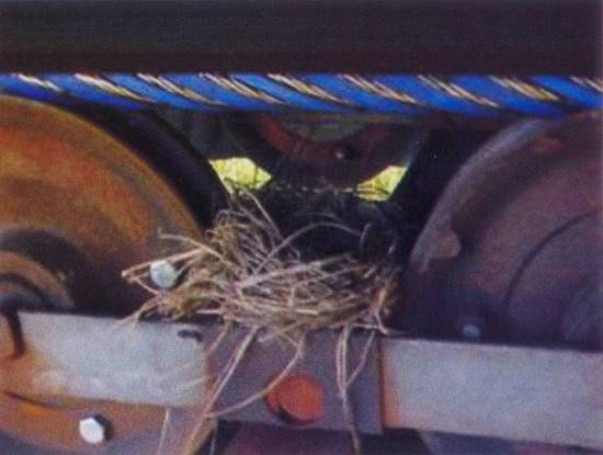 [*] Ninho de pássaro entre as polias de uma correia em funcionamento