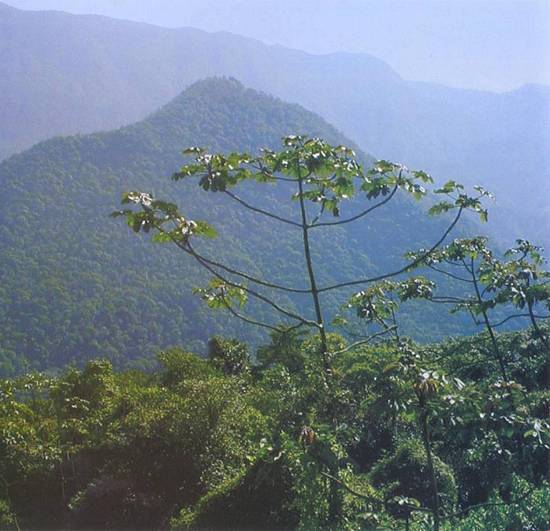 vegetação em franca recuperação, embora secundária, protegendo os solos muito instáveis e frágeis das encostas da Serra do Mar.