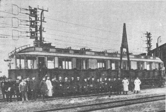 trecho de provas próximo a Berlim, por um veículo eletrificado, de 22 metros, construído pela Siemens, com 4 motores alimentados com 10.000 volts de
