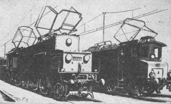 corrente trifásica, através de 3 receptores de corrente laterais. Em 1896, os trens haviam alcançado sobre o primeiro trajeto eletrificado, na